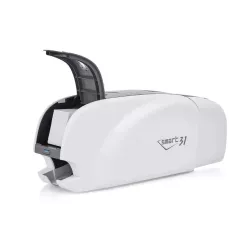 Compact et simple d'utilisation, la Smart-31 est le modèle pour les petits et moyens volumes d'impression de cartes. Le chargeur d'entrée de cartes peut en accepter jusqu'à 80 (en épaisseur 0.76 mm) avec le capot ouvert à son maximum et 25 cartes en sortie.